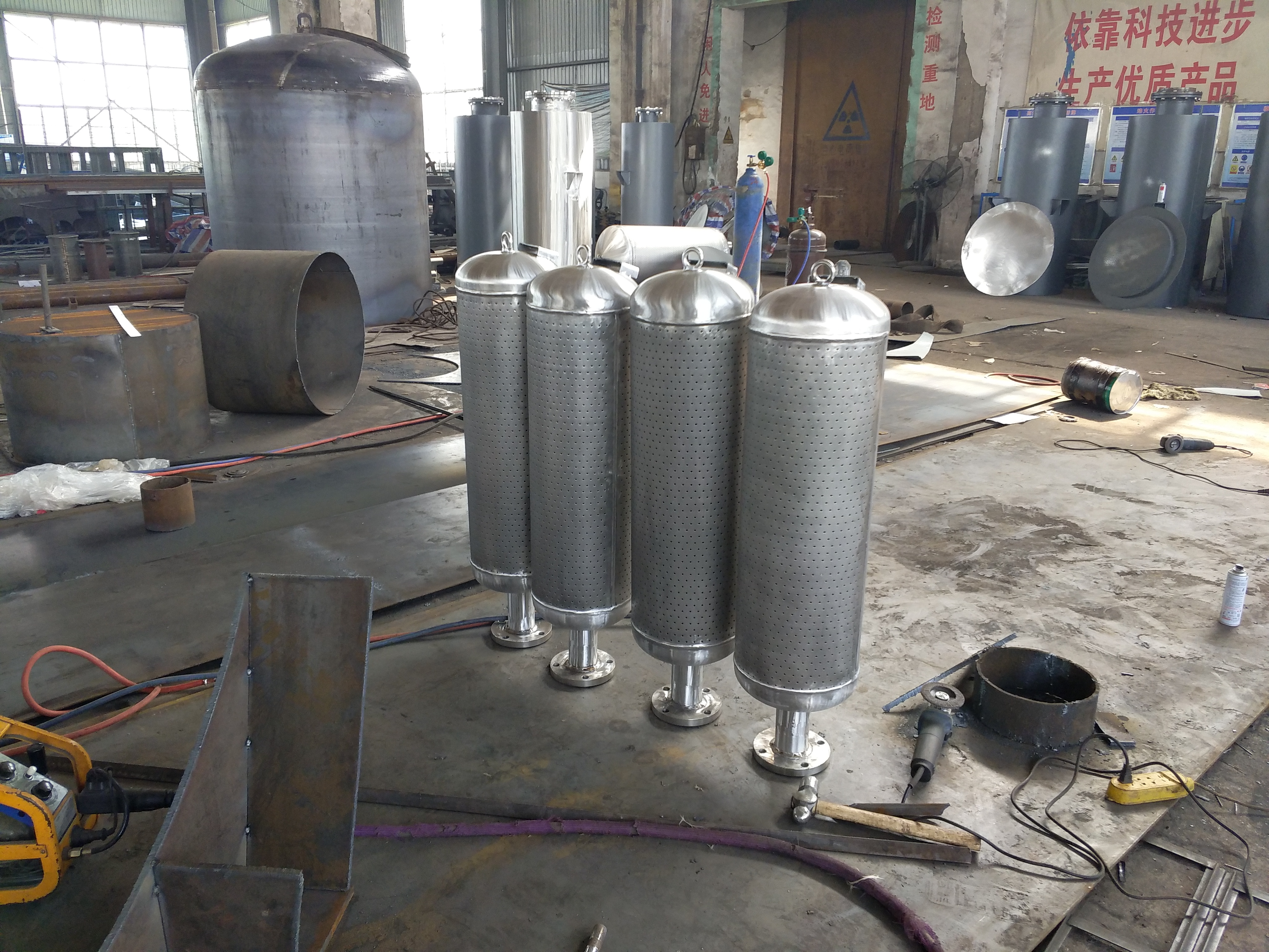 4、小孔消聲器具有低-頻寬帶消聲遙遙能,小的孔徑能提高吸聲係數,低的孔隙率能增加吸聲頻帶的寬度,孔板-度能改變共振吸聲峰的位置。小孔消聲器具備設計嚴-、吸收頻帶寬、阻損小、-高溫、-長等--。一般用於鍋爐、壓縮機等高壓設備的排氣放空。