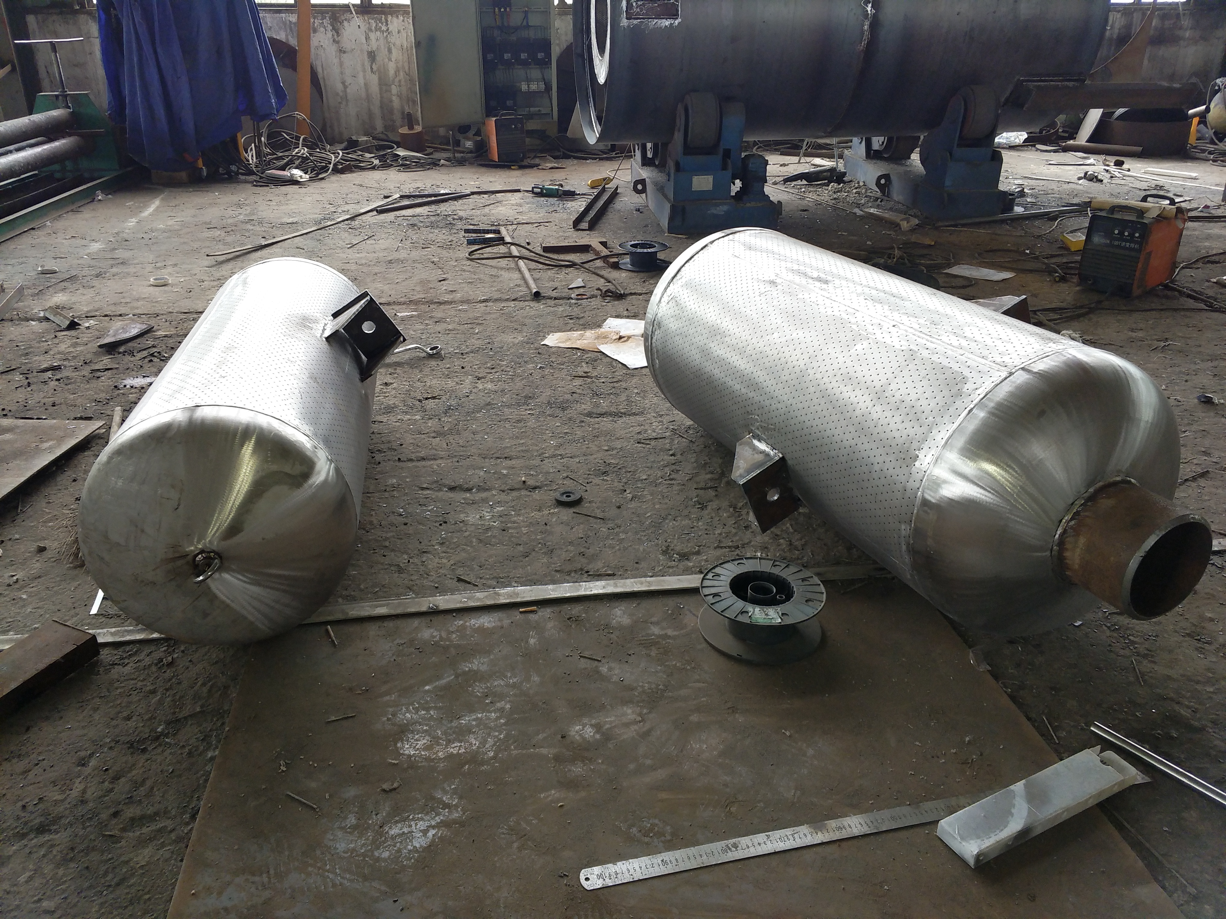 3、吹管消聲器-需適用於-劣的工作環境,工作介質-可含水、鐵質雜物(顆粒度可達∮30mm)、工程-物等。用戶選購應提供排放量、排汽出口尺寸、排汽溫度及機組型號。吹管消聲器一般選用通孔阻散型消聲器,該消聲器一般接管及外殼體為碳鋼,內部材質阻聲片為不鏽鋼,該類消聲器一般為-次-遙遙,也可根據用戶要求設計為-次遙遙。