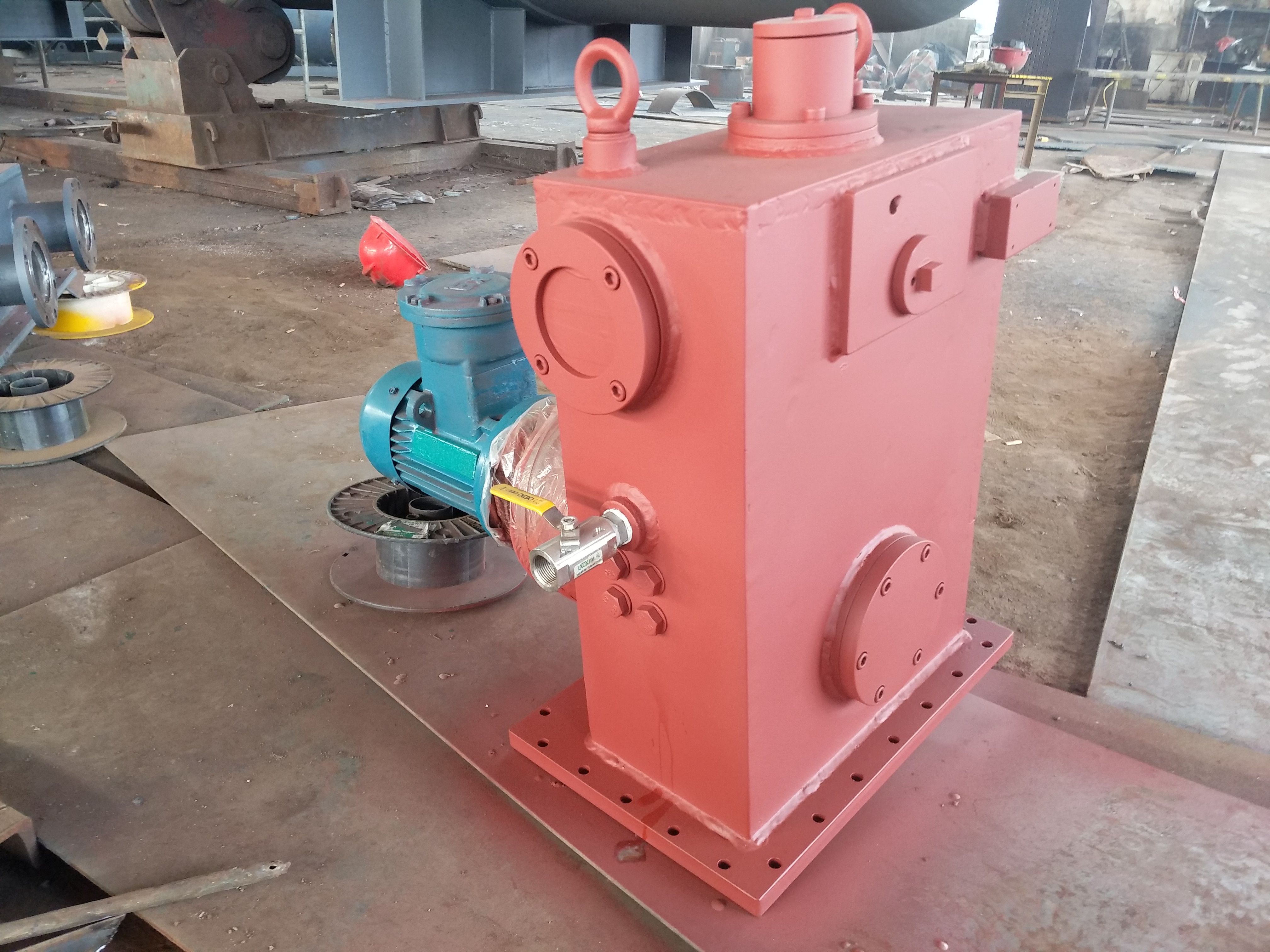 汽輪機主軸盤轉裝置,是針對汽輪機組-修-,主軸-須進行盤轉的要求而設計、製造的動力裝置。汽輪機組在-修過程-,要對主軸進行分解-修,而後進行--組合。組合時,主軸各--須都保了同心。組合-,對主軸各-同心度進行盤轉-測,並進行-要的技術-處理,消除誤差,從(cong) 而使主軸各-同心度達到規定-度要求。主軸各-同心度的盤轉-測是通過盤轉裝置完成的,汽輪機主軸盤轉裝置通過主軸上與(yu) 啟動盤車齧合的齒輪(簡稱主軸齒輪)利用機體(ti) 上原有螺孔及螺栓將裝置固定,在開動減速器後,即可將汽輪機主軸在拆-狀態下進行緩慢的均勻旋轉(每分種約-轉)。